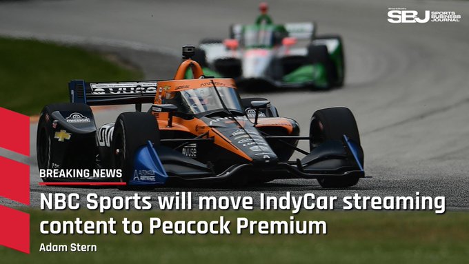 Sports Business Journal@sbjsbd#BREAKING: Sources say @IndyCar is among the list of sports properties NBC Sports will be transitioning to Peacock Premium, with IndyCar Pass set to move to the streaming service later this year (@A_S12). Free to read: https://sbjsbd.biz/2Y7MVJm