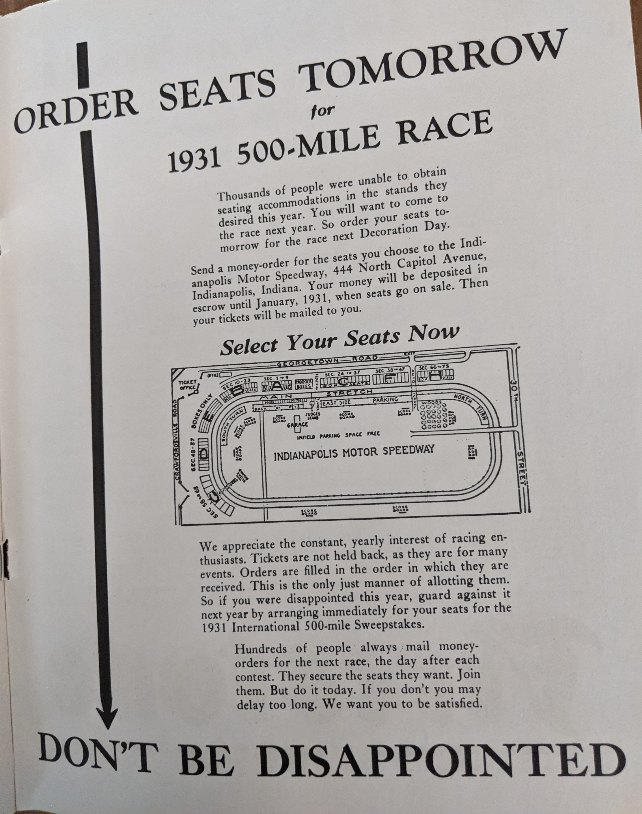 What would a 500 program be without an order form for the following year’s race?