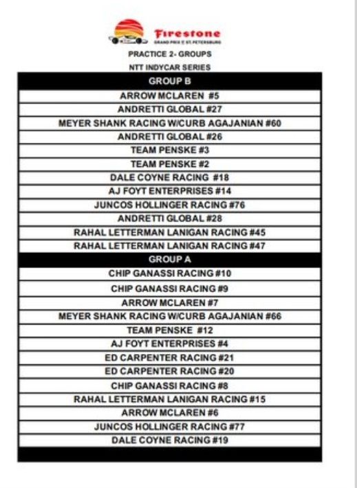 I’ll be back after IndyCar practice. The format remains the same as yesterday, butthe group morder is rversed.