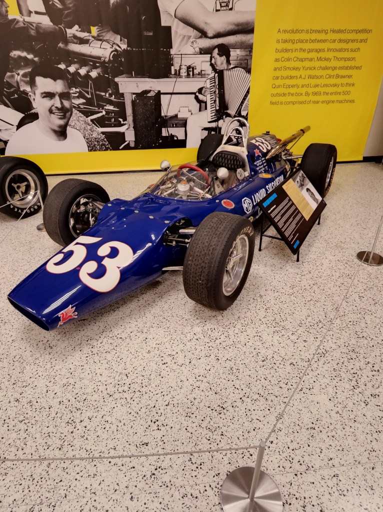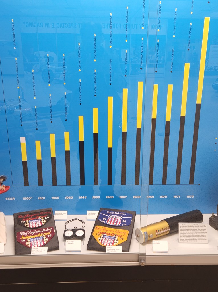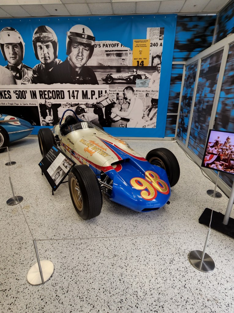The exhibit has some other fun things and also one sobering display which is a tribute to Eddie Sachs. It is nothing gory. Sachs’ car from the 1964 race is completely reconstructed as it was on race morning. I didn’t take a picture of it. The car is a nice tribute, and I paused for a moment of silent reflection.