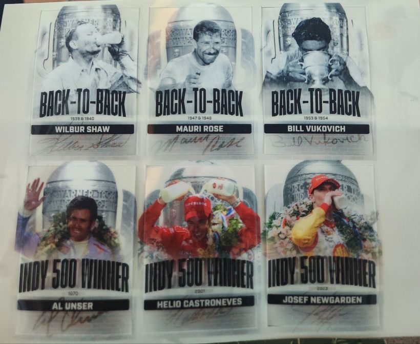 In recognition of Josef Newgarden becoming the sixth back to back winner of the 500, there is a special insert of trading cards of all the back to back winners,