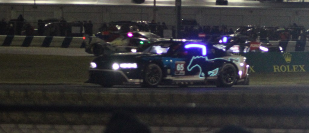 There was high attrition and 14 yellow flag periods, which seemed like more as several came in rapid succession in the middle of the night. 16 cars dropped out of the race, and several others got repaired and returned to action. A five car crash in turn 1 in the ninth hour took out cars from the top three classes. There was an audible groan from the crowd in the plaza watching on the jumbotron when AO Racing’s number 77 Porsche, “Rexy,” was involved.