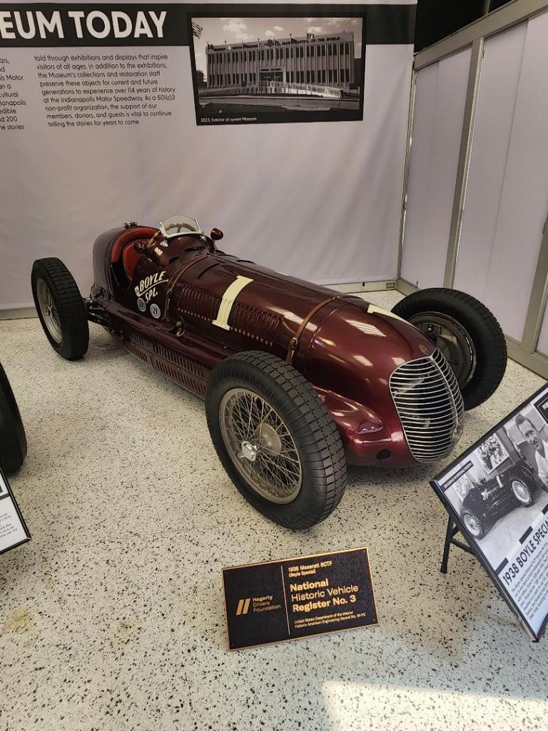 The Maserati has assumed a rightful spot alone at the entry to the main gallery. This is the greatest car in Indianapolis 500 history, with top five performances, including two victories, from 1939 through the end of the 1940s.
