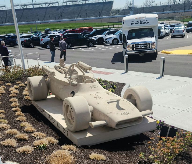 The static museum with artifacts randomly lining the walls has given way to a dynamic, immersive presentation of the history of the Indianapolis Motor Speedway. The similarity to the former place ends when you enter the front door. Yet, change begins outside as well. The two car sculptures, the 1949 Novi and the 1970 Foyt car, have been moved to flank the walkway leading to the entrance. The cars now have more visibility than they had on the lawn in front of the fountain.