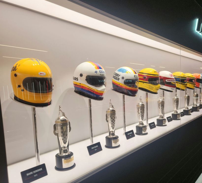 The Penske Gallery displays the history of Roger Penske. All drivers who won for him and some of the winning cars are represented. My favorite part of this exhibit was the row of helmets of the winning Penske drivers. It is a nice history of the evolution of the helmet from 1972 to today.