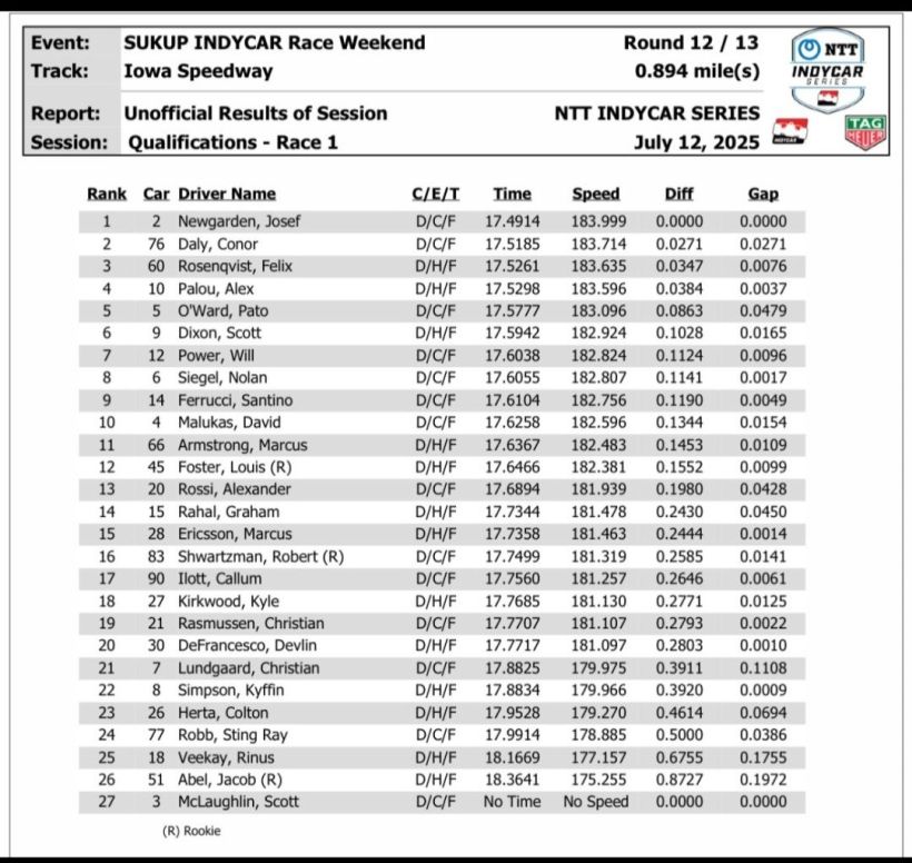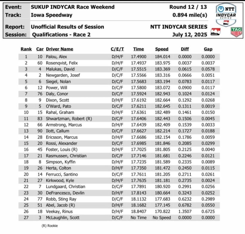 The race featured position battles at the front all day. Alex Palou and O’Ward battled side by side for the lead early. David Malukas also challenged for the lead until he was taken out of the race in an incident with Louis Foster.