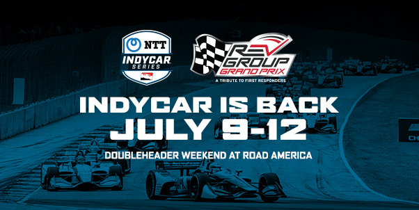 | INDIANAPOLIS (June 25, 2020) – The NTT INDYCAR SERIES will welcome fans back to the track for the first time in 2020 on July 9-12 at Road America for the REV Group Grand Prix presented by American Medical Response doubleheader race weekend.