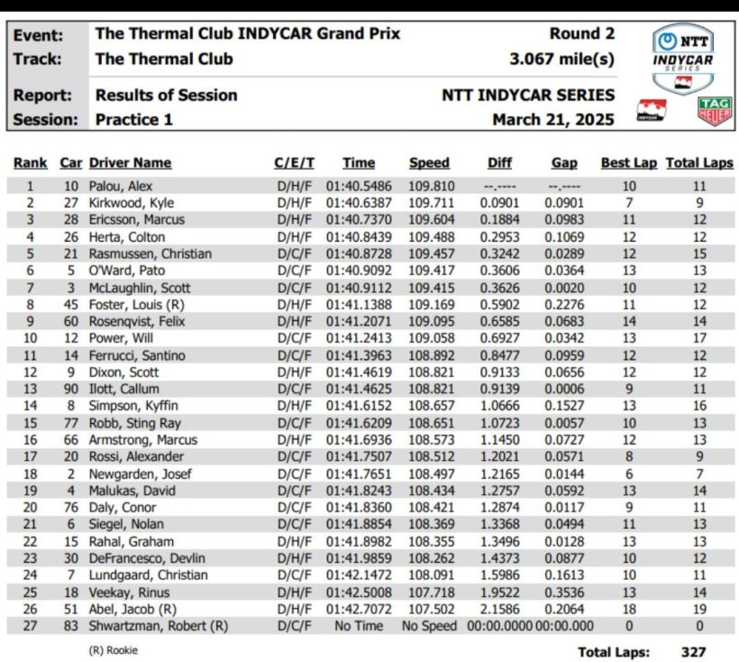 Club owner Tim Rogers told KESQ in Coachella Valley that he hopes the race can return in 2027. IndyCar had an exhibition race at the club near Palm Springs, California, in 2024, and a points paying grand prix on March 23 this year.