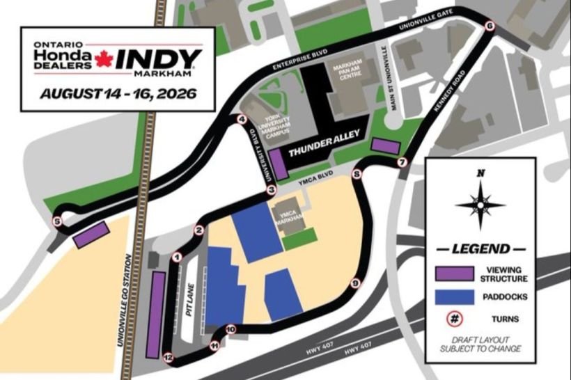 Yesterday morning IndyCar and Green Savoree Promotions held a news conference to introduce the new home of the former Toronto race in Markham, Ontario, Markham is a suburb of Toronto, scheduled for August 14-16, 2026. Exhibition Place is not available because of the World Cup taking place in June and July. The track had been getting squeezed by development, and I wasn’t sure how much longer IndyCar would be able to race there.